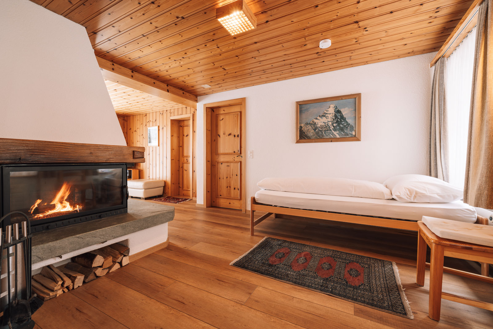 L’appartement de vacances Wetterhorn à Grindelwald est un appartement confortable de 50 m2 de 2,5 pièces. Il offre une cuisine, un salon et une cheminée ainsi qu’une spacieuse terrasse orientée sud avec vue sur les montagnes. L’appartement de vacances est situé au centre et à seulement 1 minute à pied de l’arrêt de bus de l’église de Grindelwald et à 1 km de la gare de Grindelwald. L’appartement offre une chambre séparée avec 1 lit double. 1 à 2 lits supplémentaires peuvent être ajoutés. En hiver, la piste de ski de la vallée de Grindel mène presque au pied de l’appartement de vacances lorsque les conditions d’enneigement sont bonnes. Le restaurant de l’Hôtel Gletschergarten peut également accueillir les clients de l’appartement de vacances du Wetterhorn.