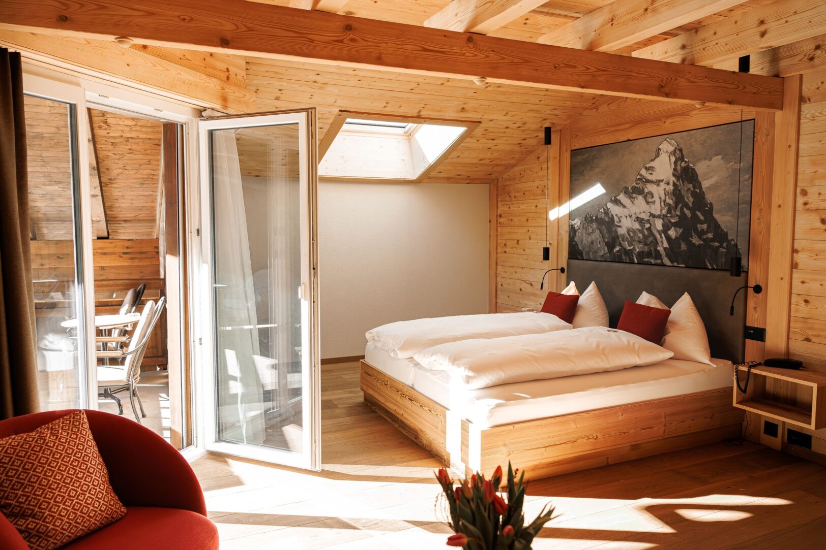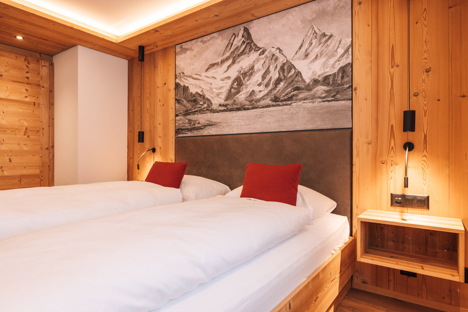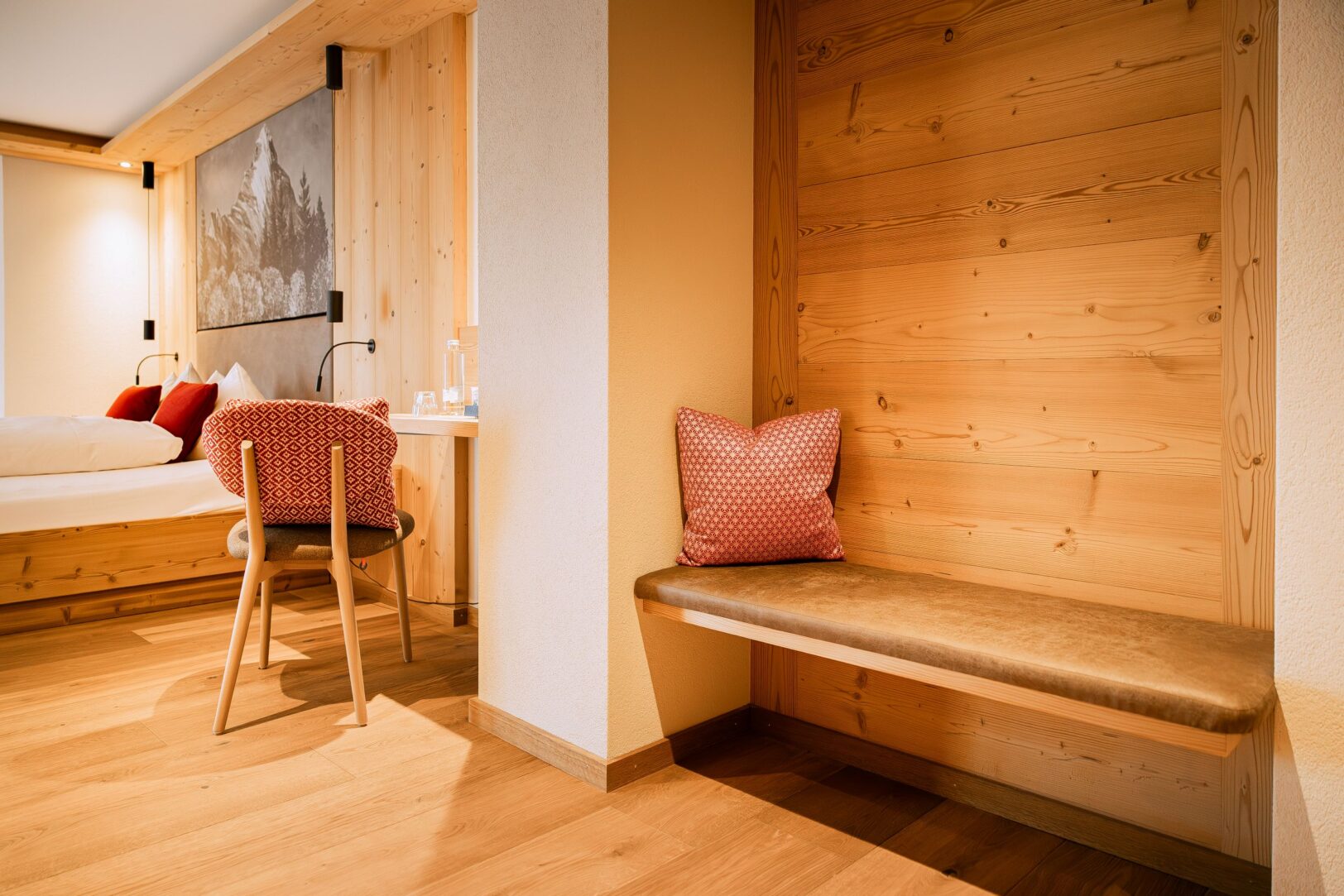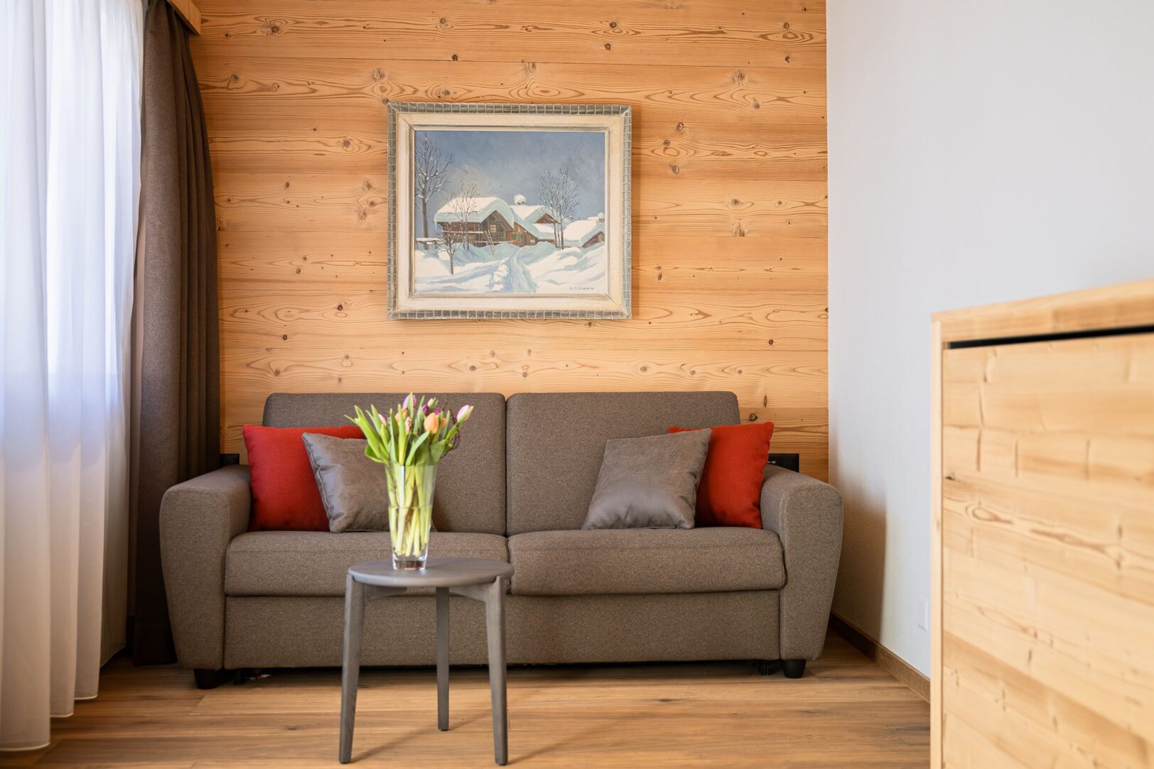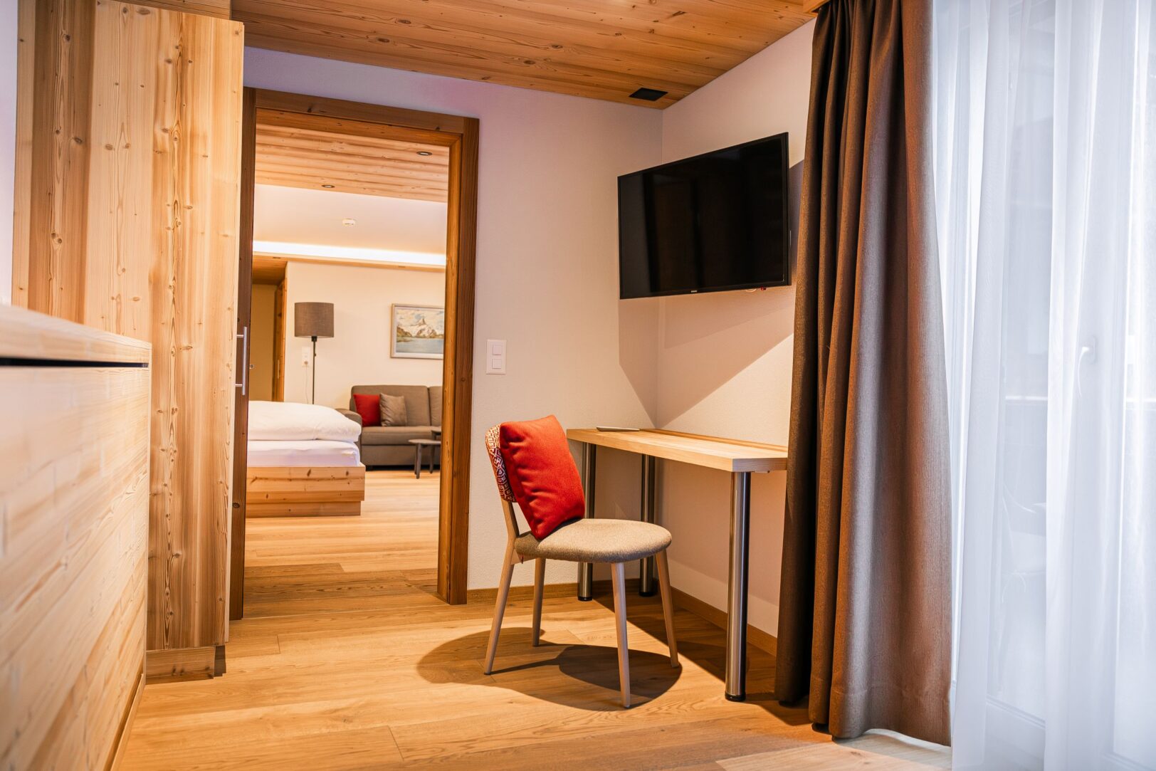 Unsere neu renovierten Junior Suiten empfangen Sie mit einer rustikalen Einrichtung und prachtvoller Aussicht auf die umliegende Berg-, Gletscher- oder Hügellandschaft. Diese Zimmerkategorie ist ideal geeignet für Familien mit bis zu vier Personen.