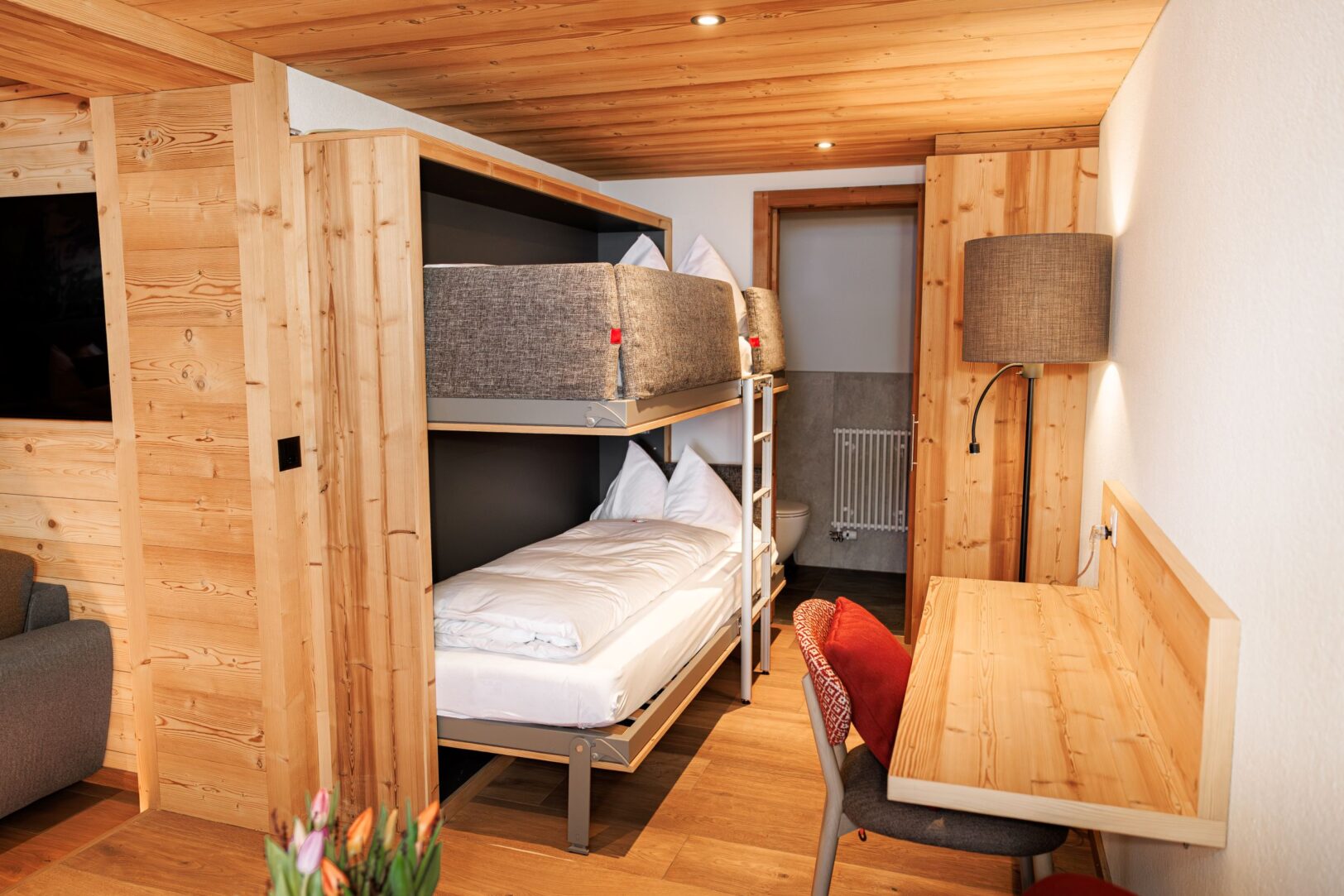 Alle Zimmer verfügen über einen Balkon und entweder Badewanne oder Dusche in einem frisch renovierten Bad / WC. Diese Zimmer sind mit 1 Doppelbett (2x 90cm) und mit 1-2 Etagenbett oder Schlafcouch erhältlich sowie mit, Haartrockner, Safe, Flachbild-TV, Radio, Telefon und Weckservice ausgestattet. Die Gästekarte mit zahlreichen Vergünstigungen in der Jungfrau Region ist inbegriffen.
